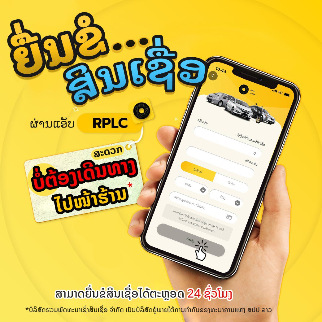 ຍື່ນຂໍສິນເຊື່ອຜ່ານແອັບ RPLC ສະດວກ ບໍ່ຕ້ອງເດີນທາງໄປໜ້າຮ້ານບໍ່ວ່າຈະເປັນລົດຈັກ ລົດໃຫຍ່ ທຸກຊະນິດສາມາດຍື່ນຂໍສິນເຊື່ອໄດ້ຕະຫຼອດ 24 ຊົ່ວໂມງ